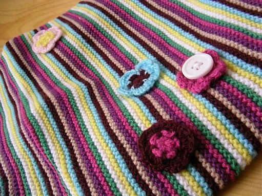 マルチストライプで、腰の部分には、かぎ編みで作られたお花が♪♪