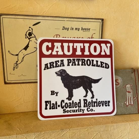 Caution サインボード フラットコーテッドレトリーバー