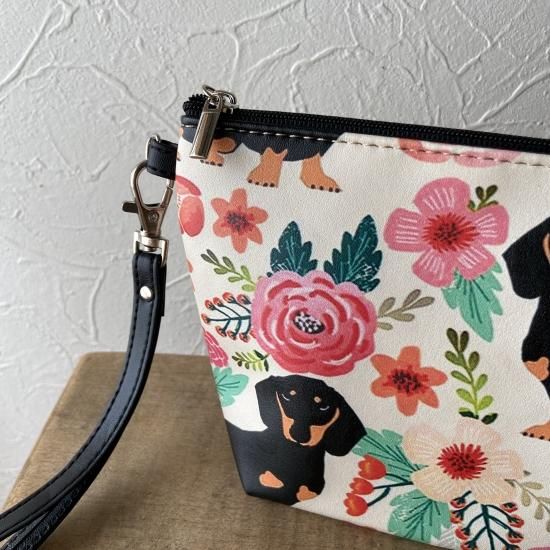 フラワーポーチ ダックスフンド コスメポーチ 化粧ポーチ